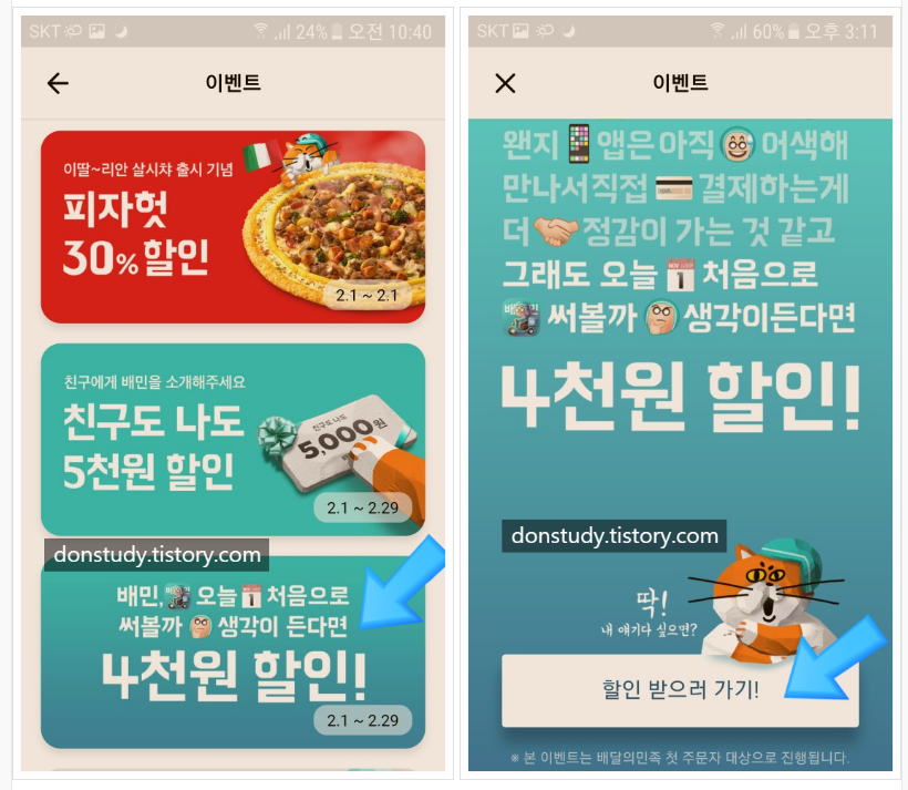 배달의민족 첫주문할인 2가지 방법