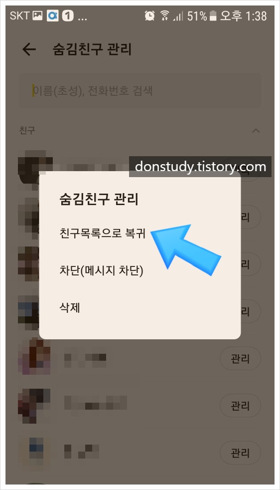 카카오톡 친구삭제 하는 법 & 복구 하는 법