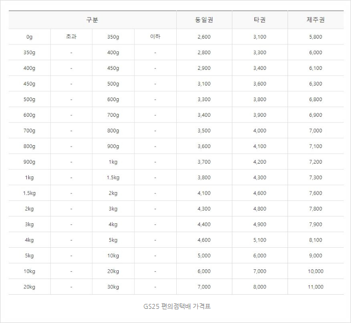 1. gs편의점 택배 가격표