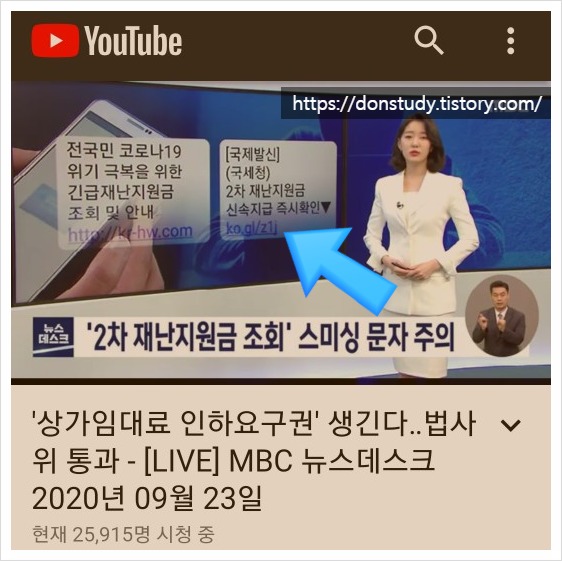 위의 첨부된 이미지는 필자가 뉴스를 보다가 캡쳐를 해서 부모님께 보내드린 사진이다. 이 뉴스에서 아나운서는 2차 재난지원금 문자는 안내내용만 있지 절대 링크를 첨부하지 않는다고 몇번이고 강조했다.