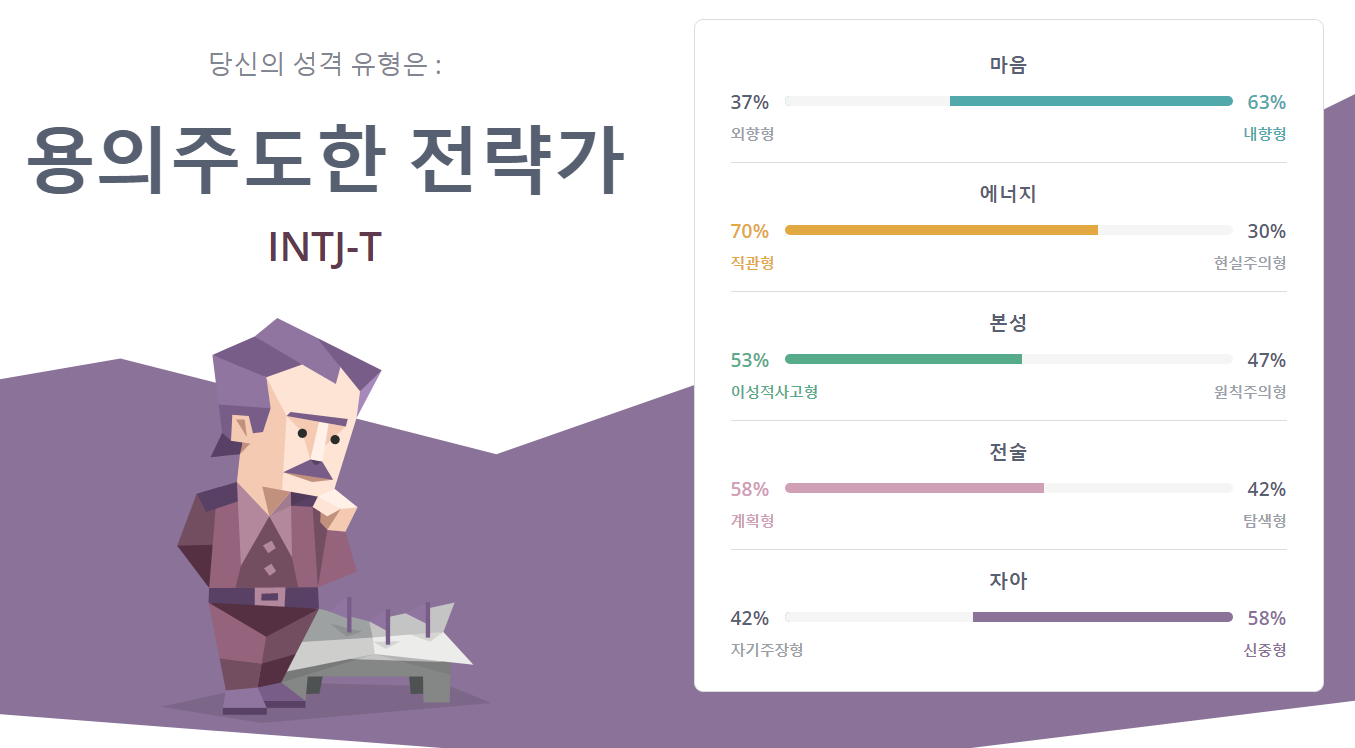 위 사이트에서 한국어로 MBTI 무료 검사를 할 수 있고, 결과도 바로 볼 수 있다. 성격유형은 총 16가지이며 이중에서 나는 무엇일까? 어떤 성향일까? 궁금한 사람들은 가벼운 마음으로 한번 도전해보자. 나에게 대해 좀더 알 수 있는 이해할 수 있는 지표가 될지도 모른다.